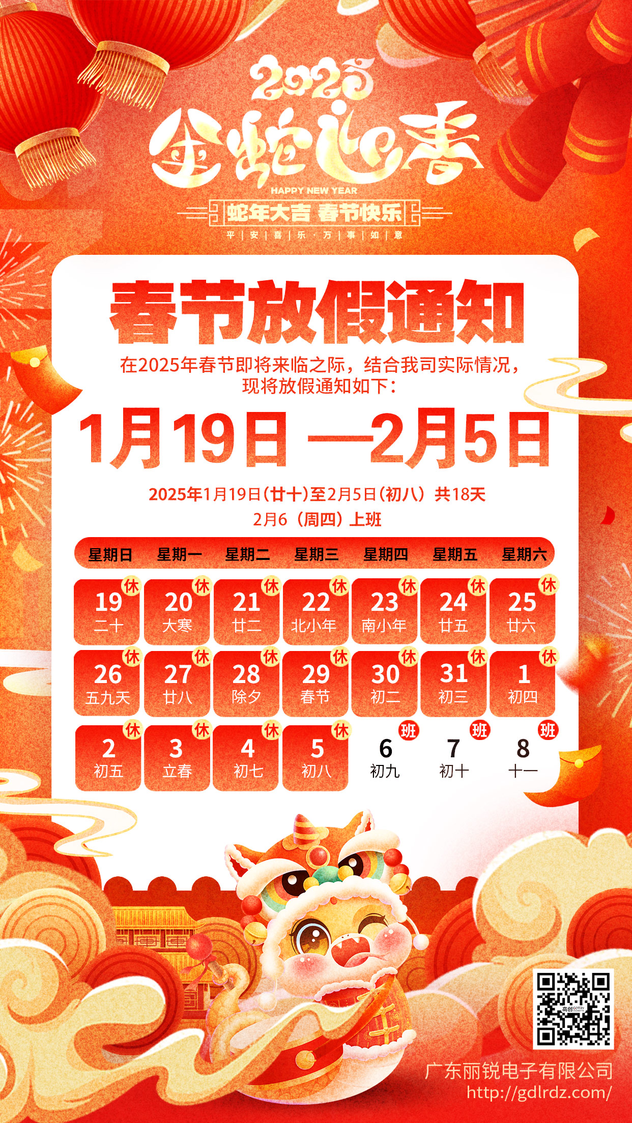 25年春節即將來臨,根據國家春節通知精神,結合我司的實際情況,現將我司春節放假時間通知如下: